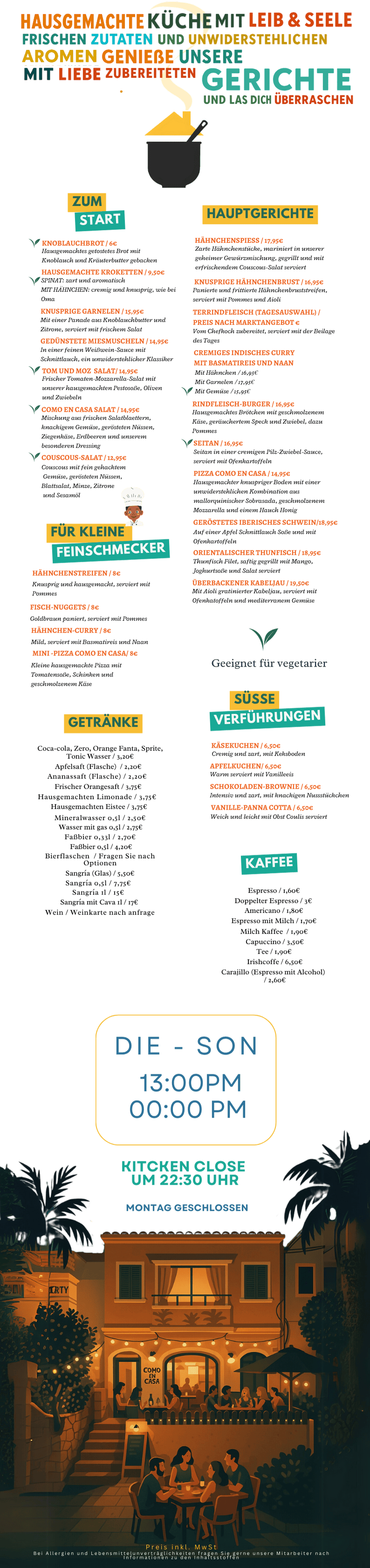 CENAS DE MARTES A DOMINGO DE 17:30 A 22:30HS